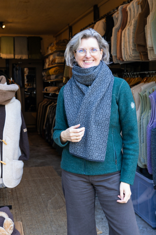 De Fiona sjaal is gebreid in een prachtig jacquardpatroon en voegt warmte en stijl toe aan elke outfit. Het zachte materiaal voelt comfortabel en knus aan, terwijl het subtiele ontwerp een elegante uitstraling geeft