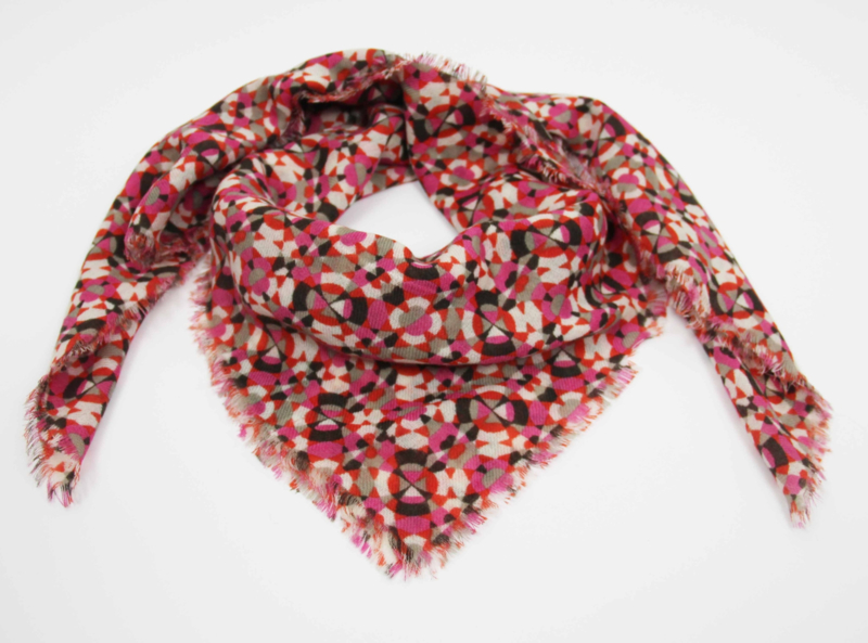OverzichtDe Partition Fuchsia is een vierkante sjaal die opvalt door zijn frisse energie. Het grafische lijnenspel oogt tegelijk speels en elegant, terwijl de fuchsiaroze tint levendigheid toevoegt en verrassend makkelijk combineert met neutrale basics of andere kleuraccenten.