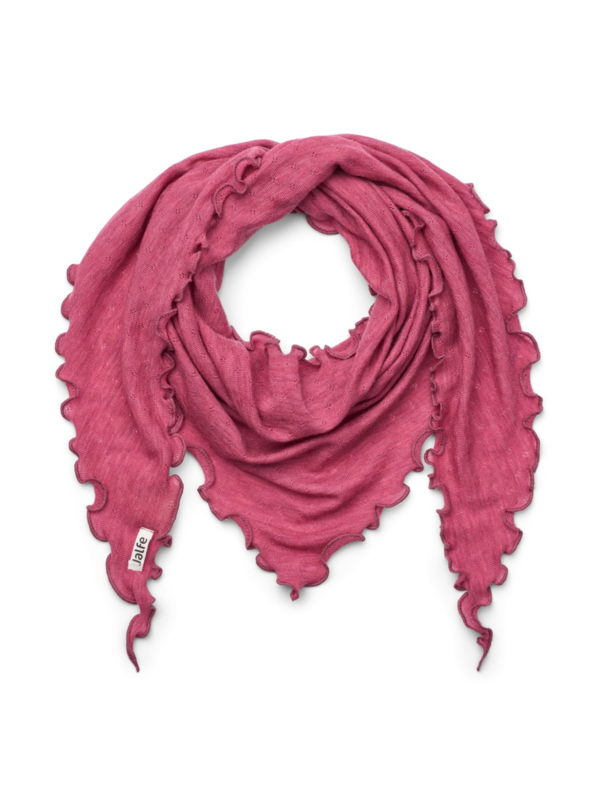 De Jalfe-sjaal met ajourpatroon biedt ultiem draagplezier: lekker warm, maar niet te dik, licht in gewicht en makkelijk mee te nemen. Hij draagt superlicht en comfortabel, en laat zich moeiteloos combineren met elke outfit.
