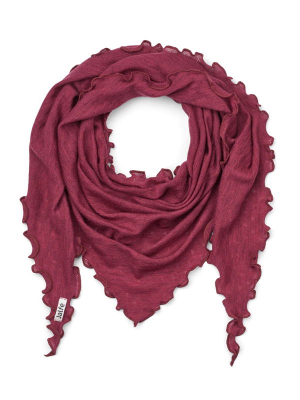 De driehoekige sjaal met ajourpatroon is gemaakt van 100% ultrazachte merinowol en voelt heerlijk comfortabel aan. Het ajourbreisel, ook wel bekend als pointelle, geeft de effen sjaal een vrouwelijke en elegante uitstraling en maakt het geheel extra licht en elastisch.